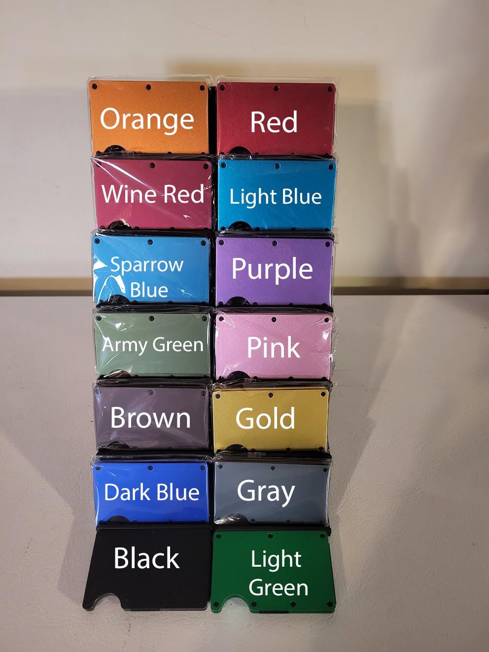 Custom engraved metal wallets. I can custom engrave a saying, logo, photo etc. They can hold a lot of cards. Also has a clip on the back of it to hold cash or clip onto pants.